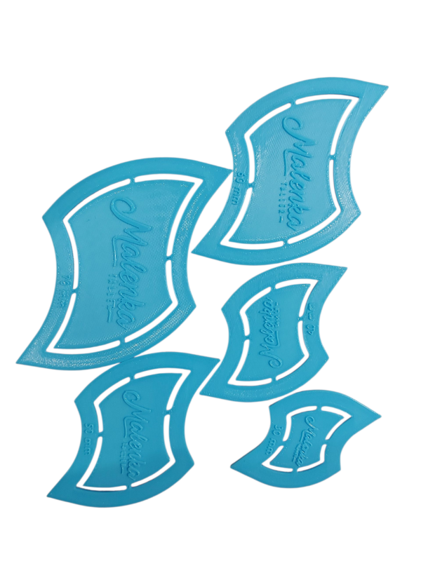 Plantilla para marcar formas para patchwork costura a mano. Incluyen cinco medidas, 30; 40; 50; 60 y 70 mm de largo más margen de costura.